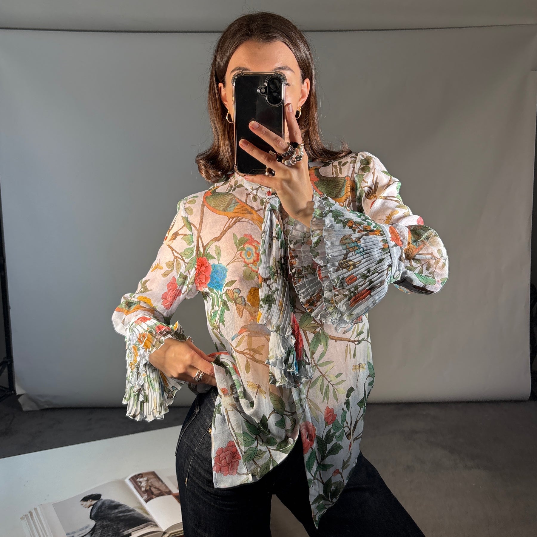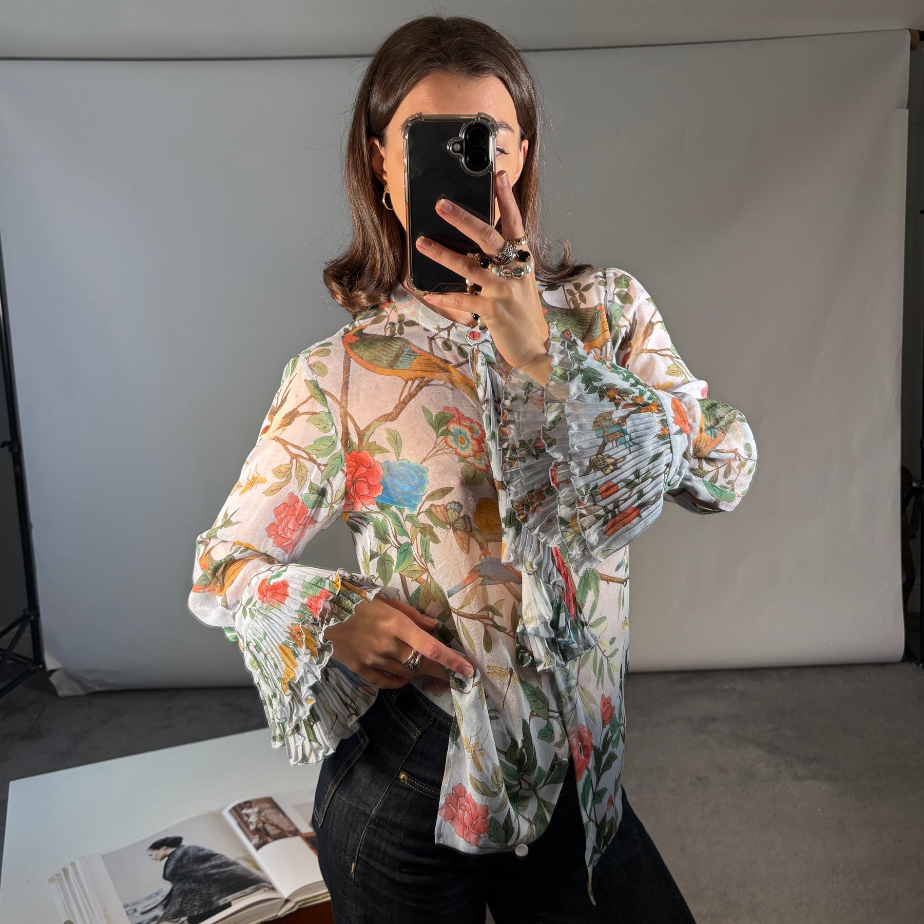 GUCCI Blue Sheer Floral Blouse IT 42 UK 10