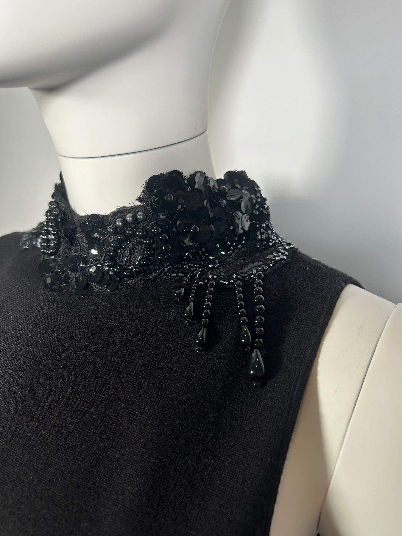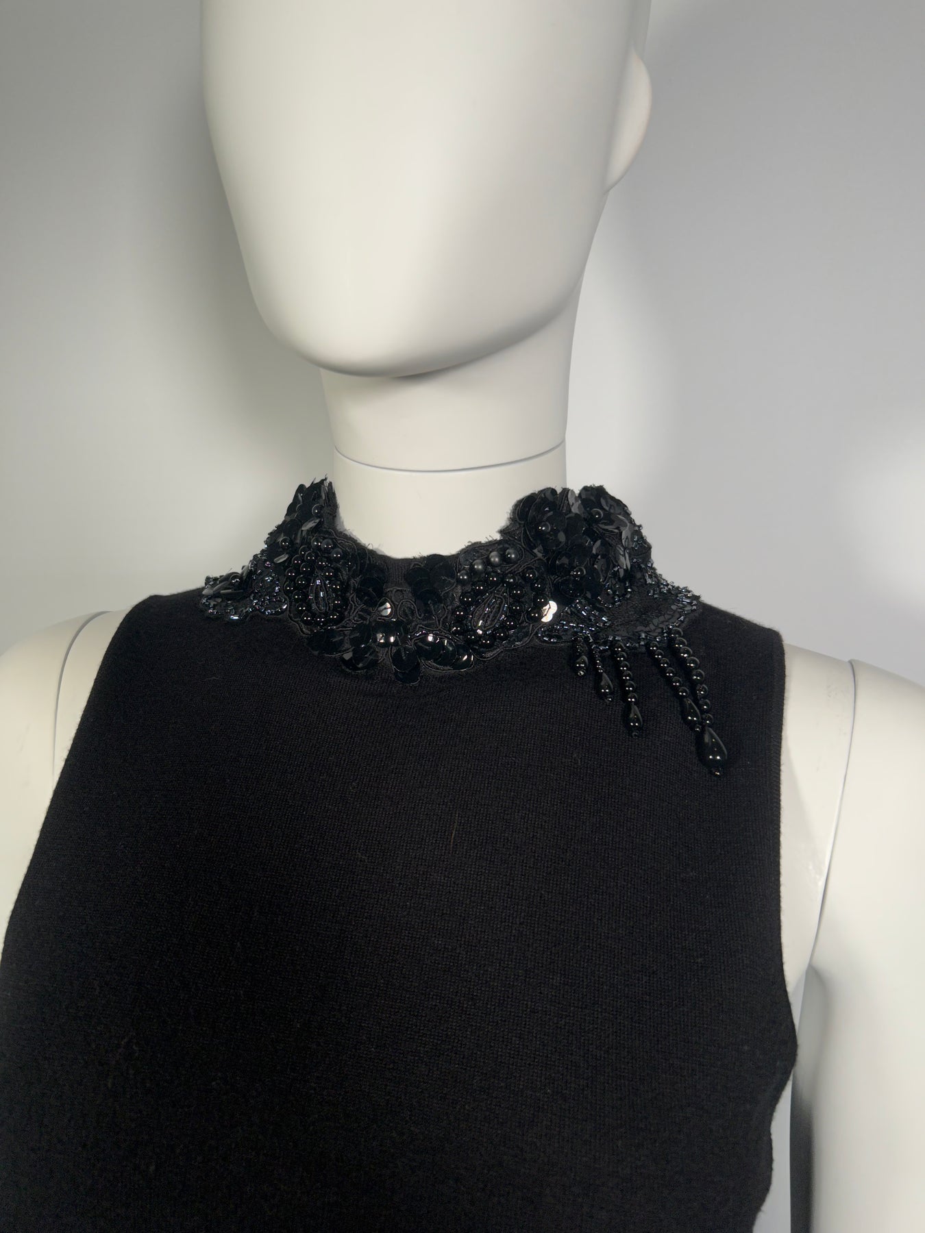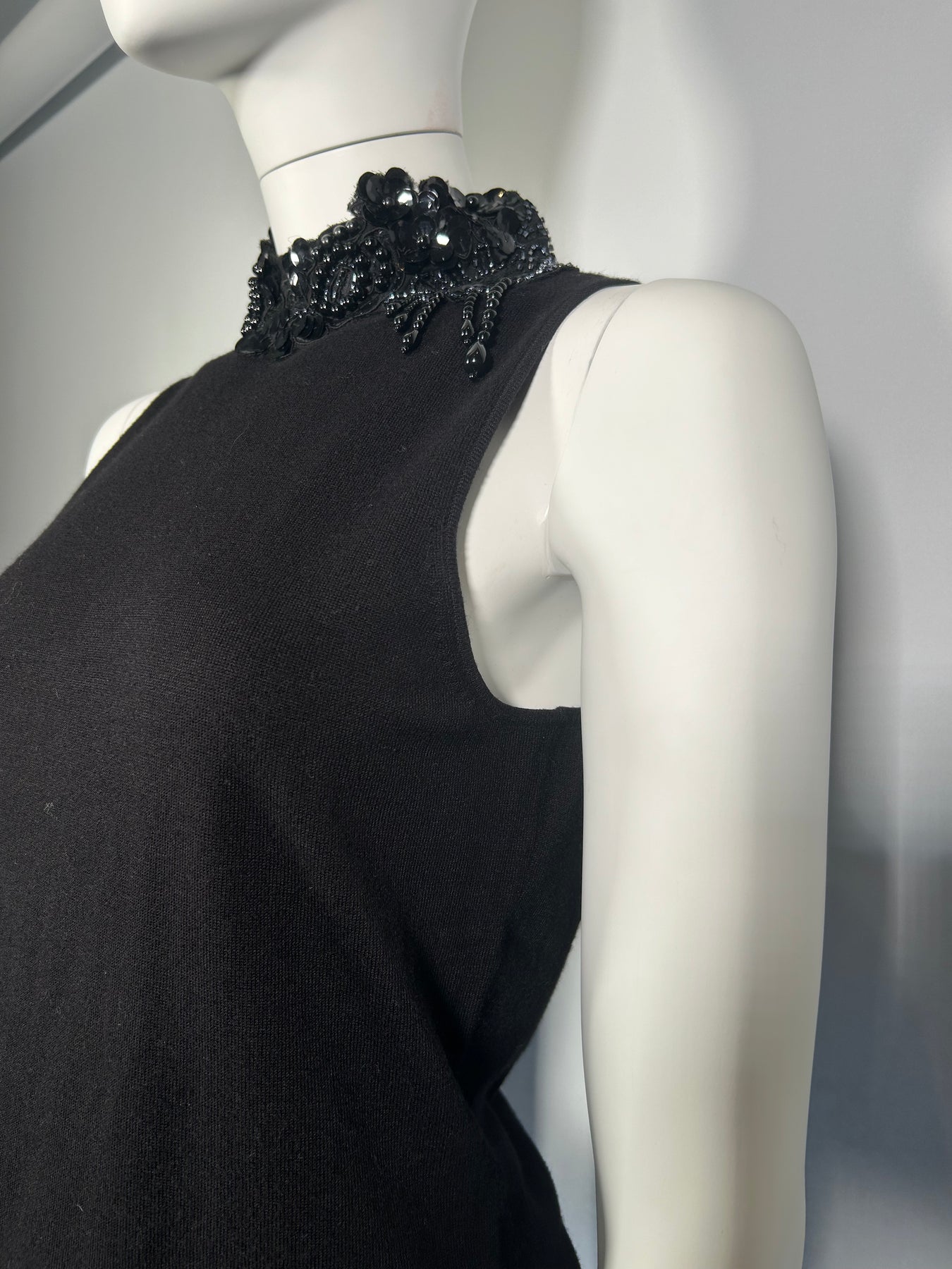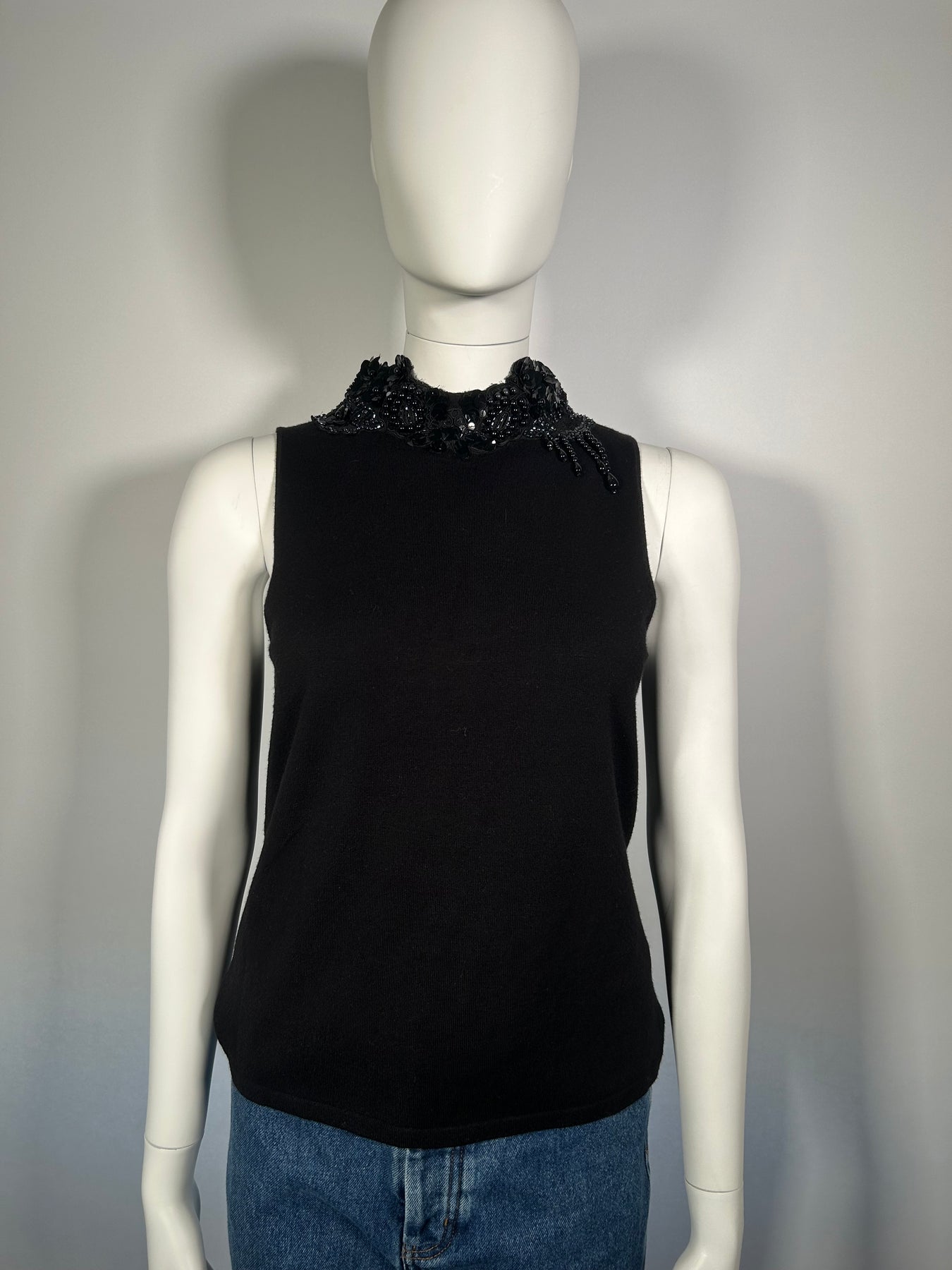 MAX MARA Top UK M/L Black Sleeveless Cashmere Beaded High Neck