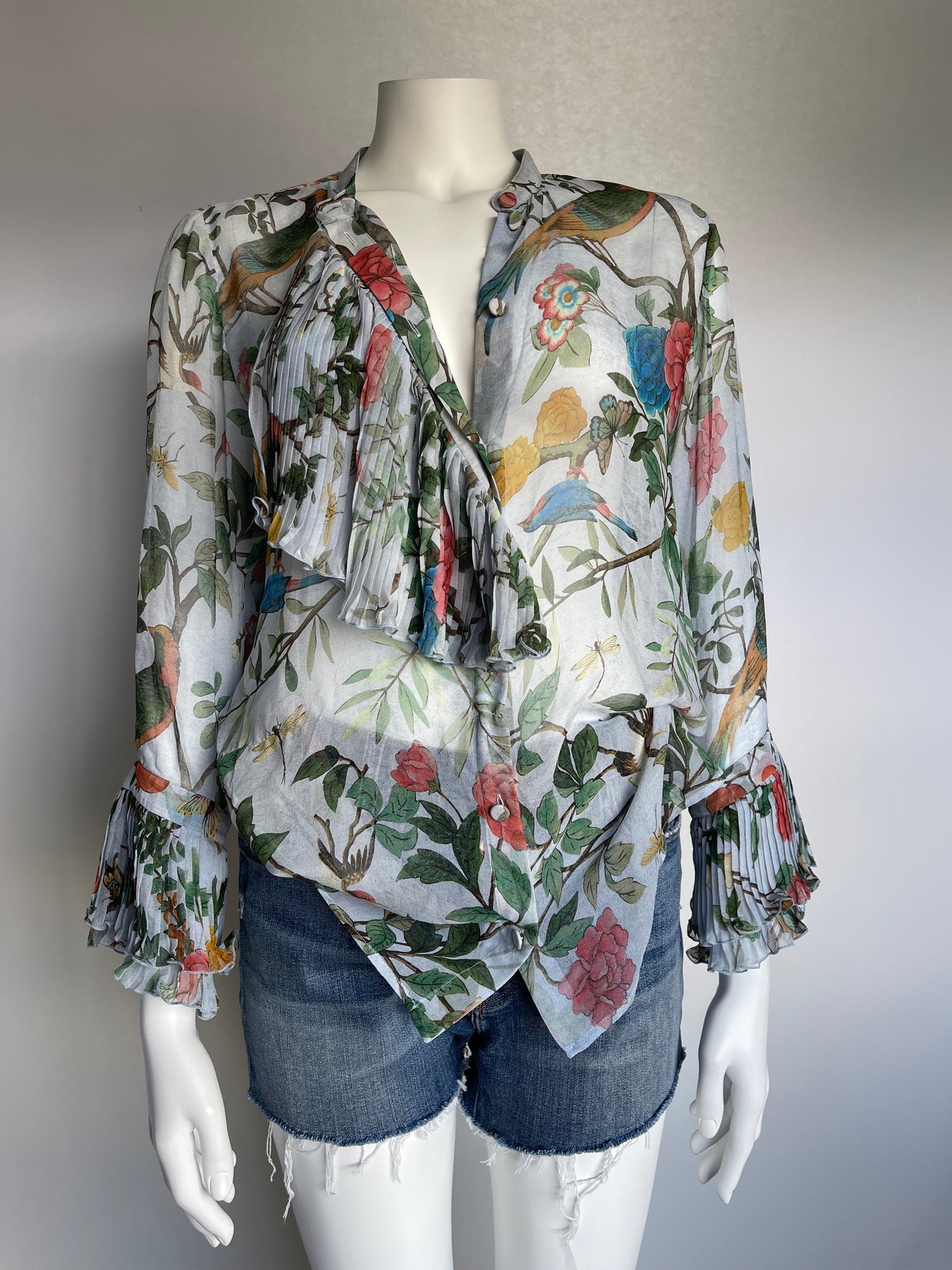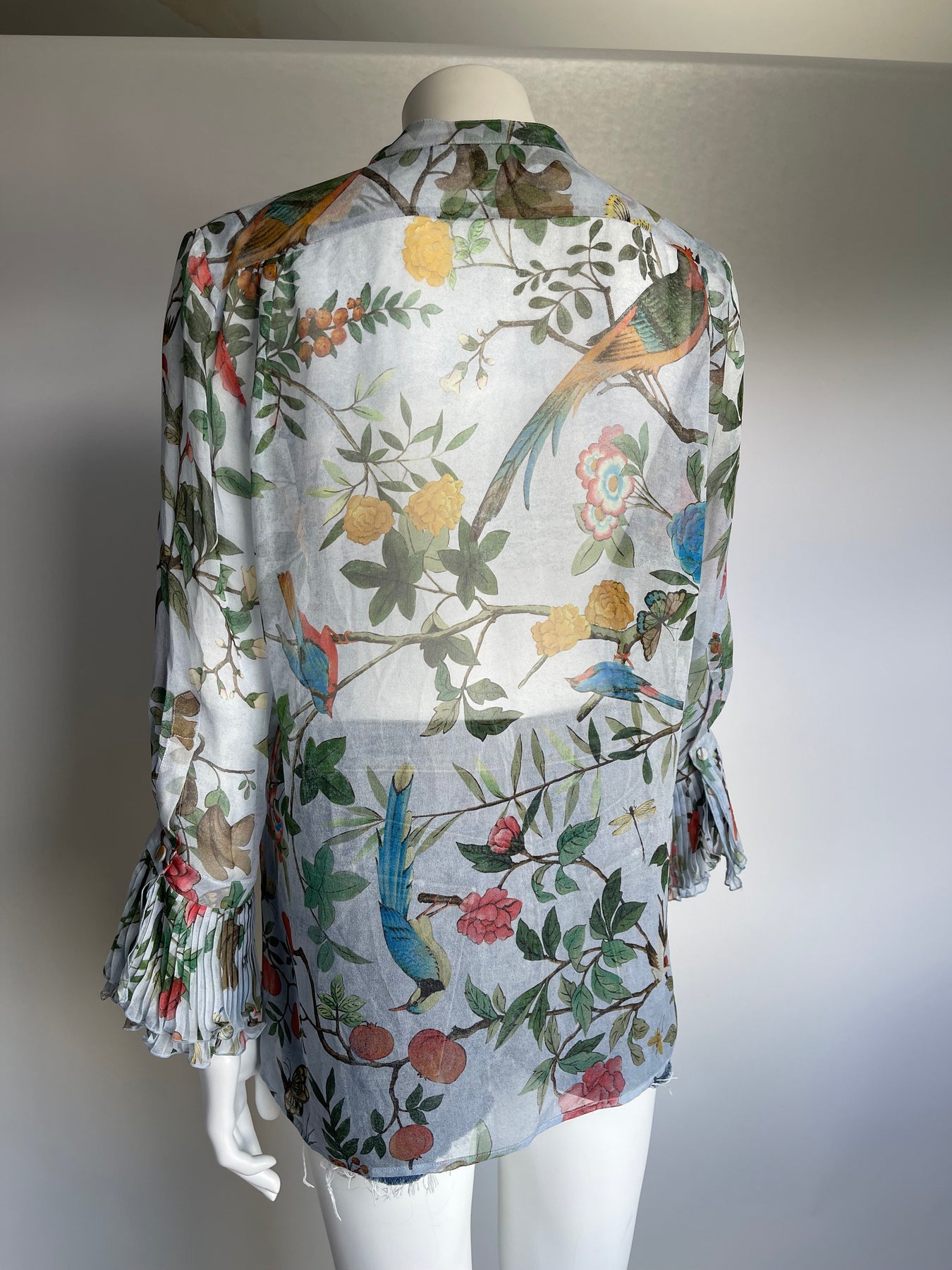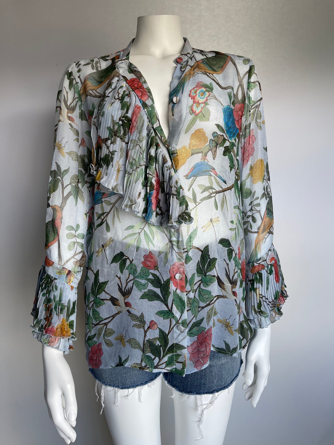 GUCCI Blue Sheer Floral Blouse IT 42 UK 10