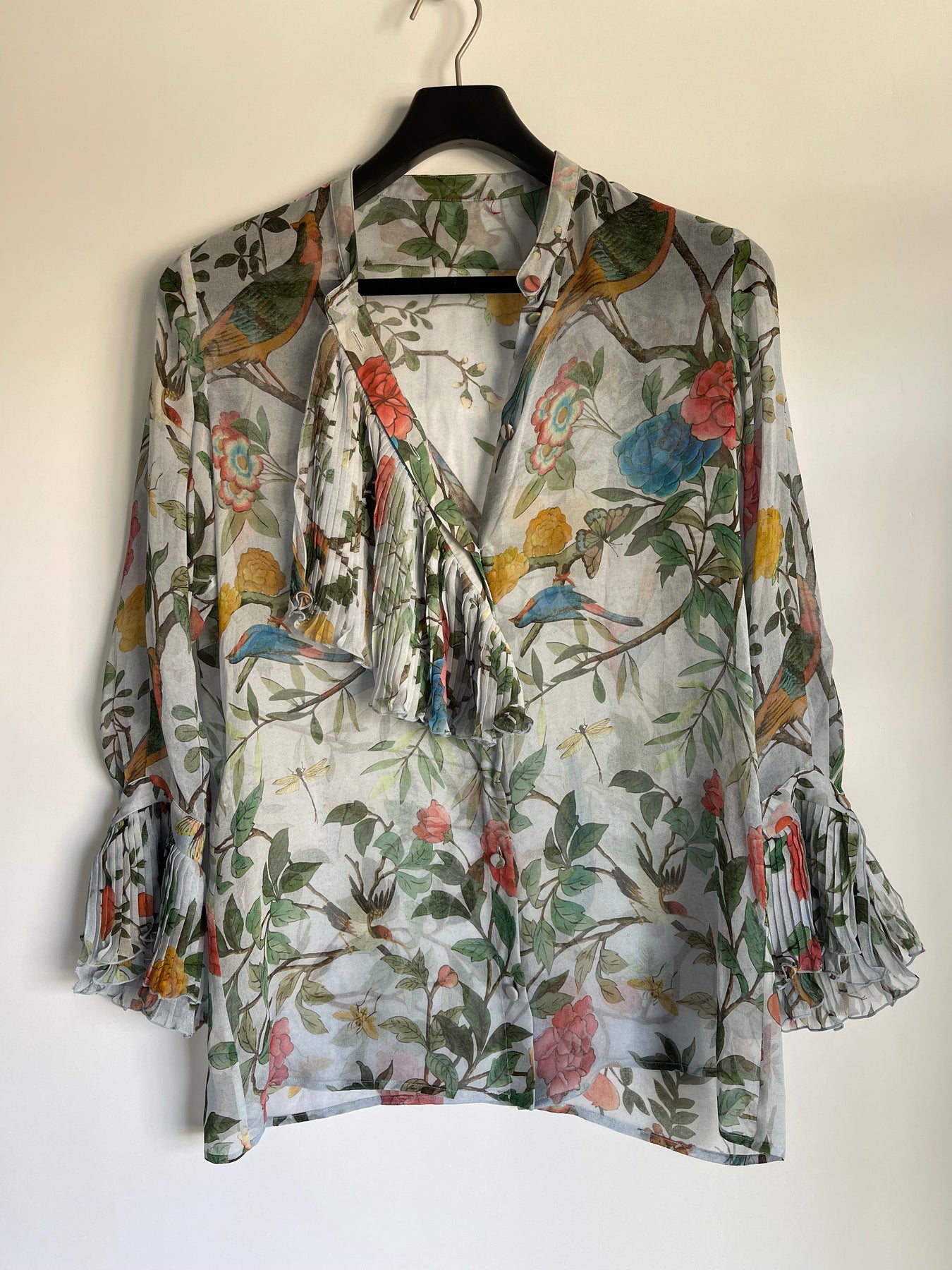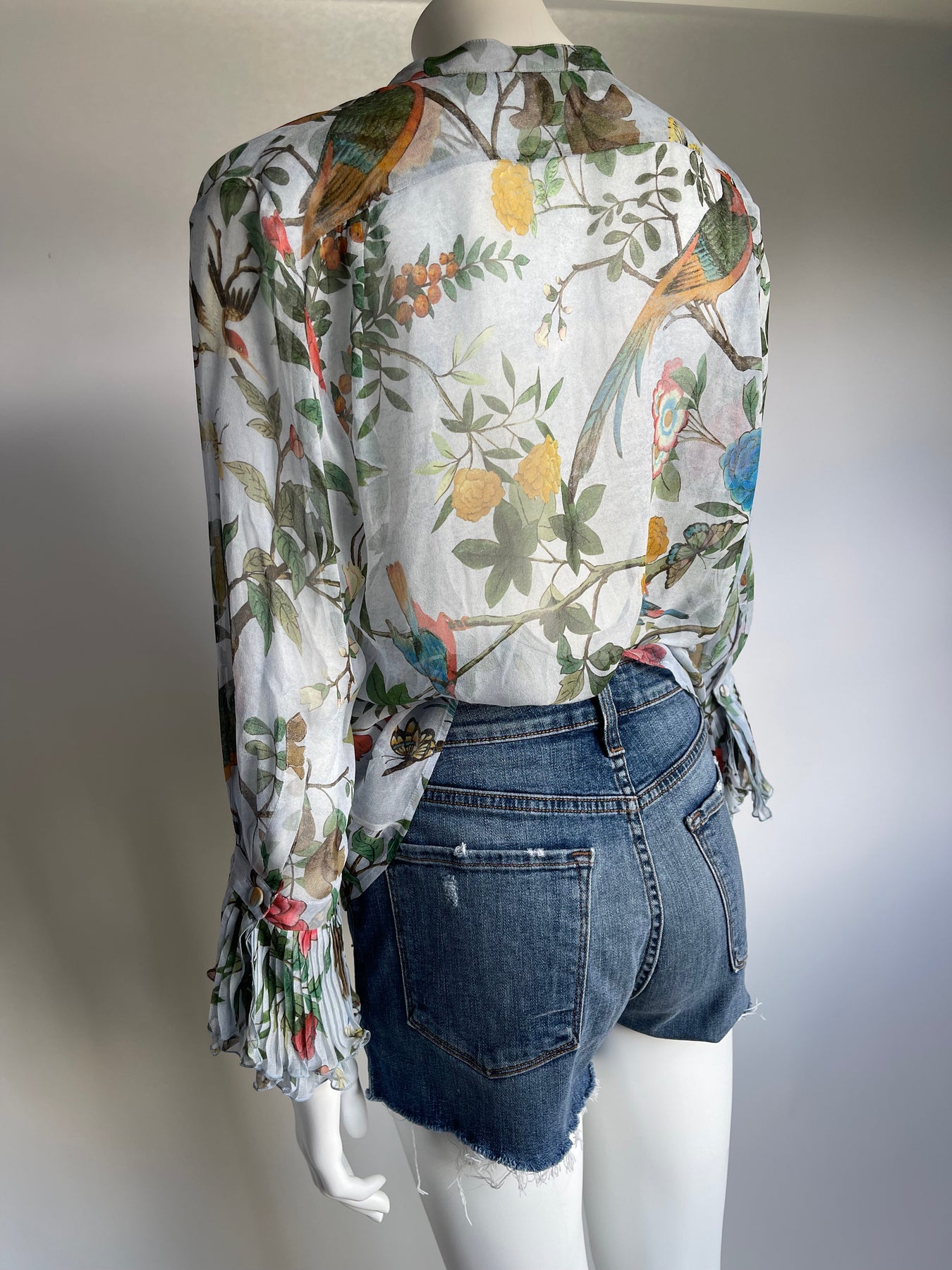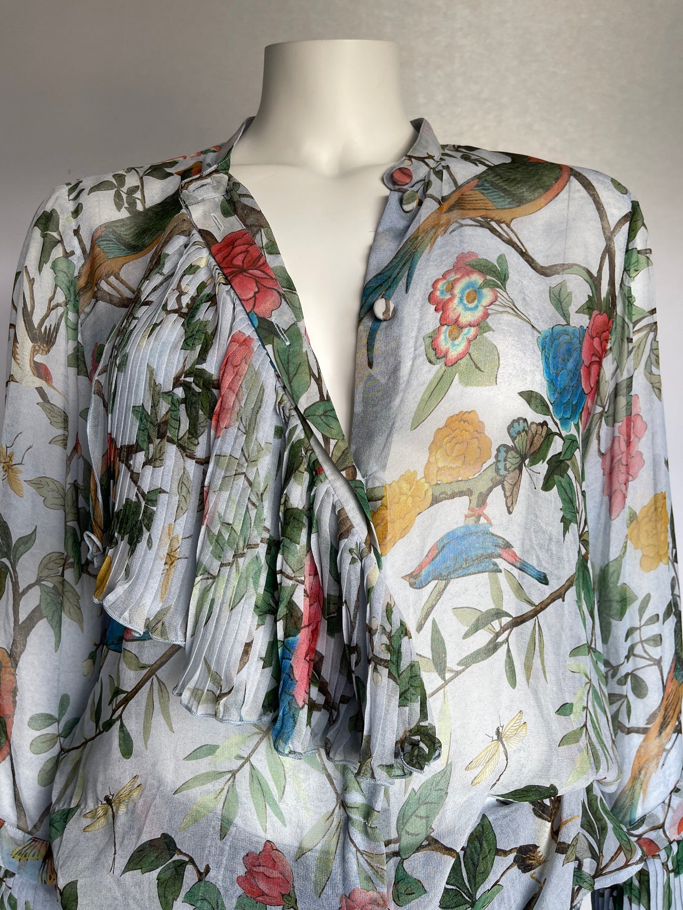GUCCI Blue Sheer Floral Blouse IT 42 UK 10