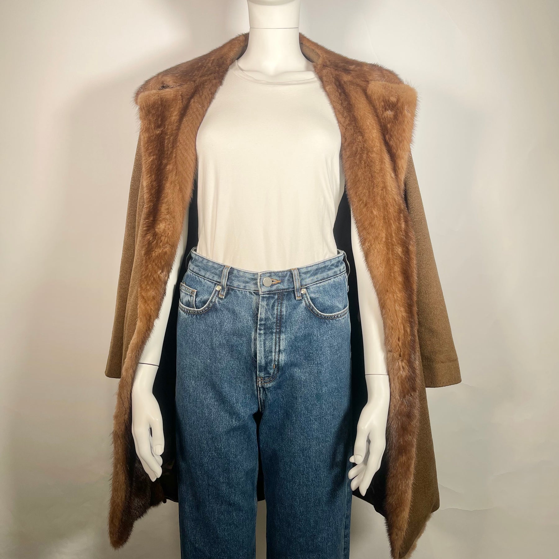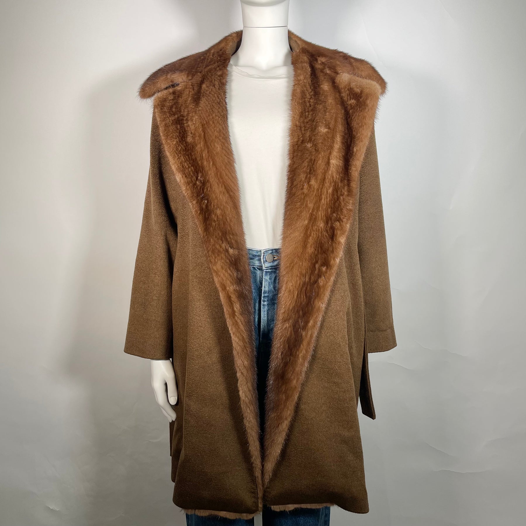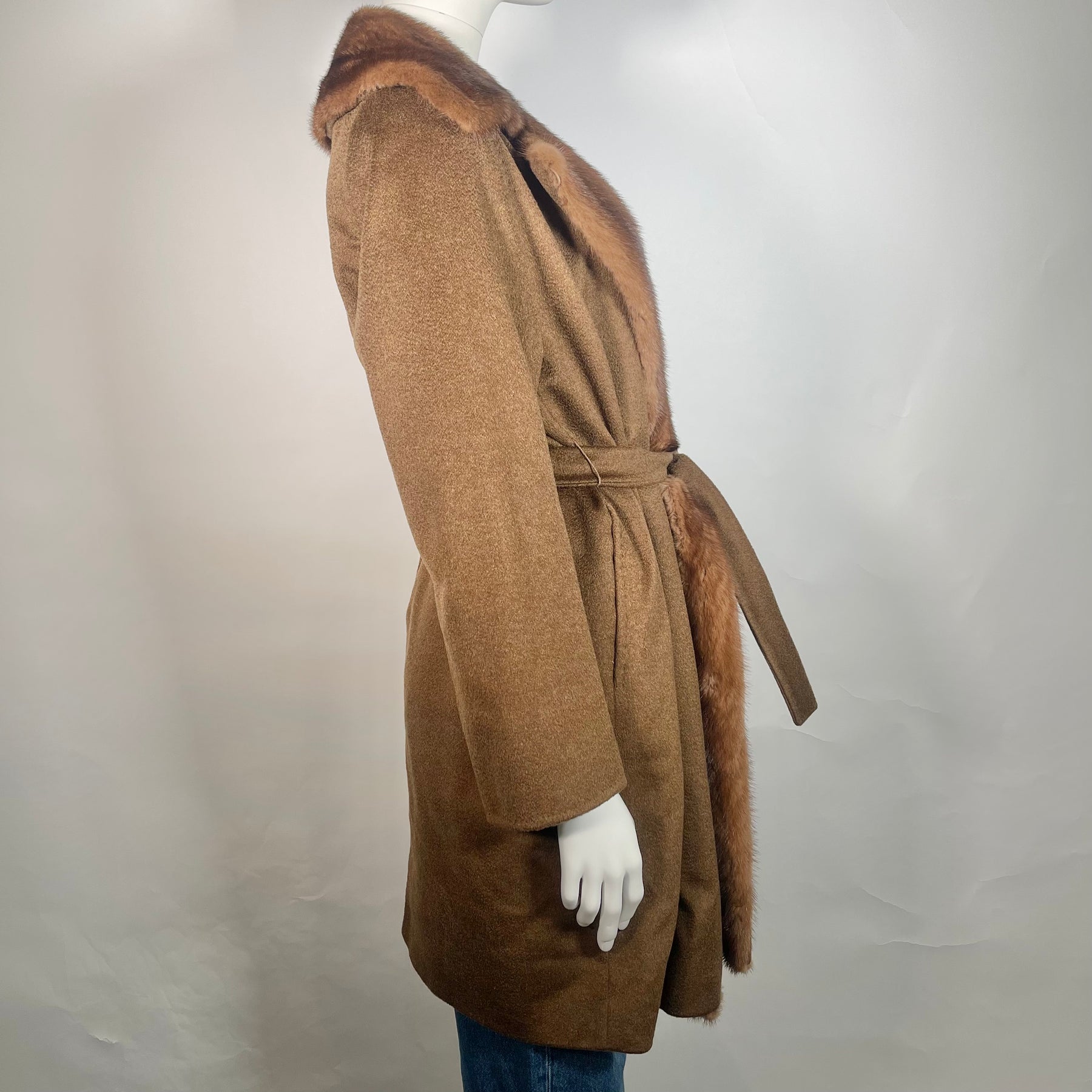 MAX MARA Vintage Coat IT 36 UK 8-12 Brown Cashmere Mink Trim Belted Mid Length