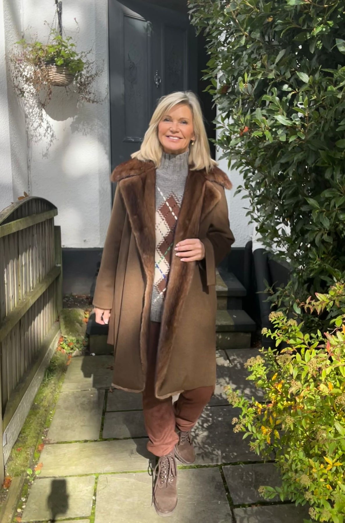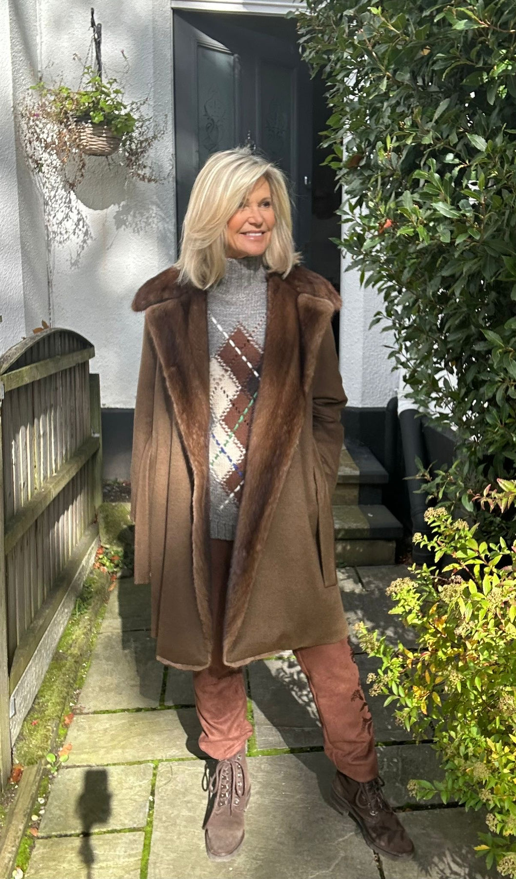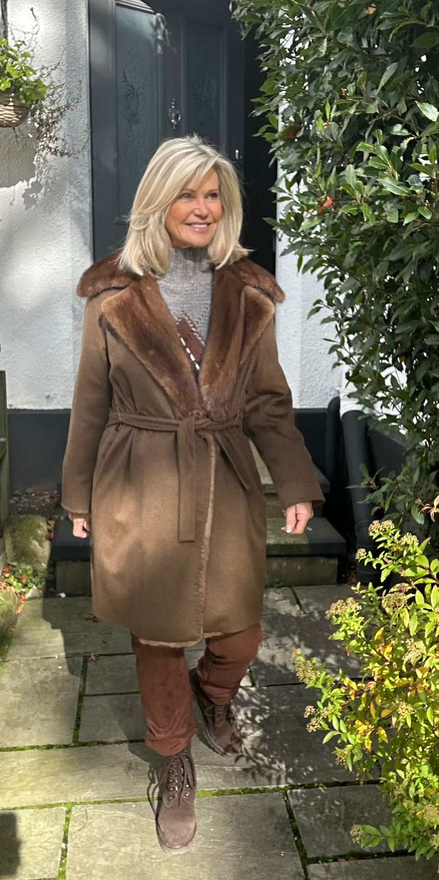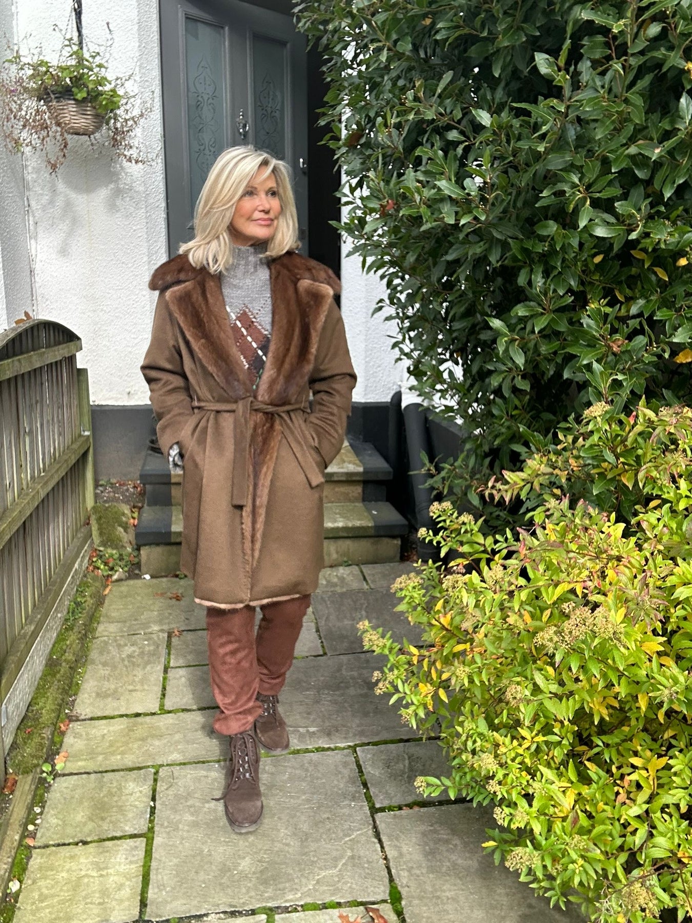 MAX MARA Vintage Coat IT 36 UK 8-12 Brown Cashmere Mink Trim Belted Mid Length