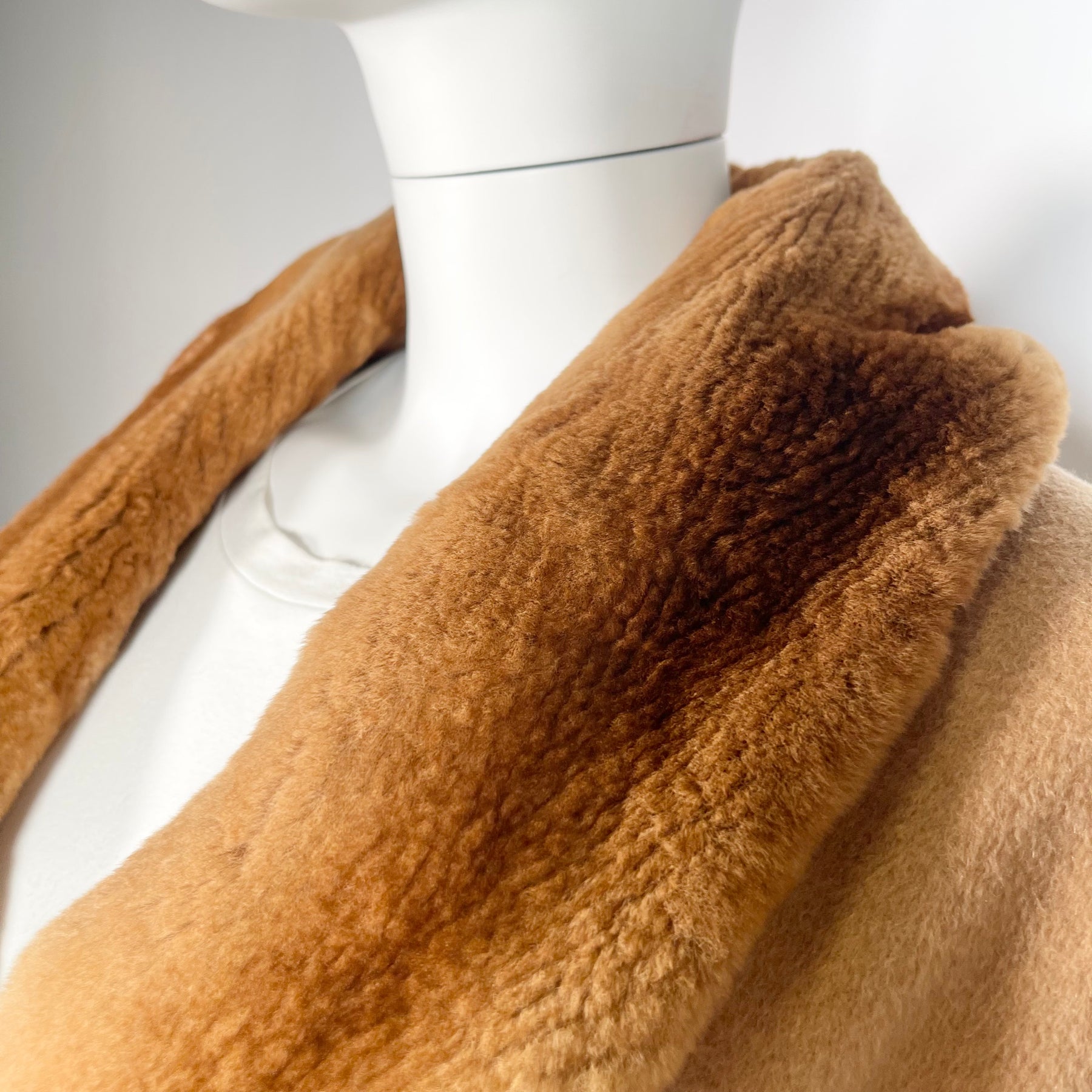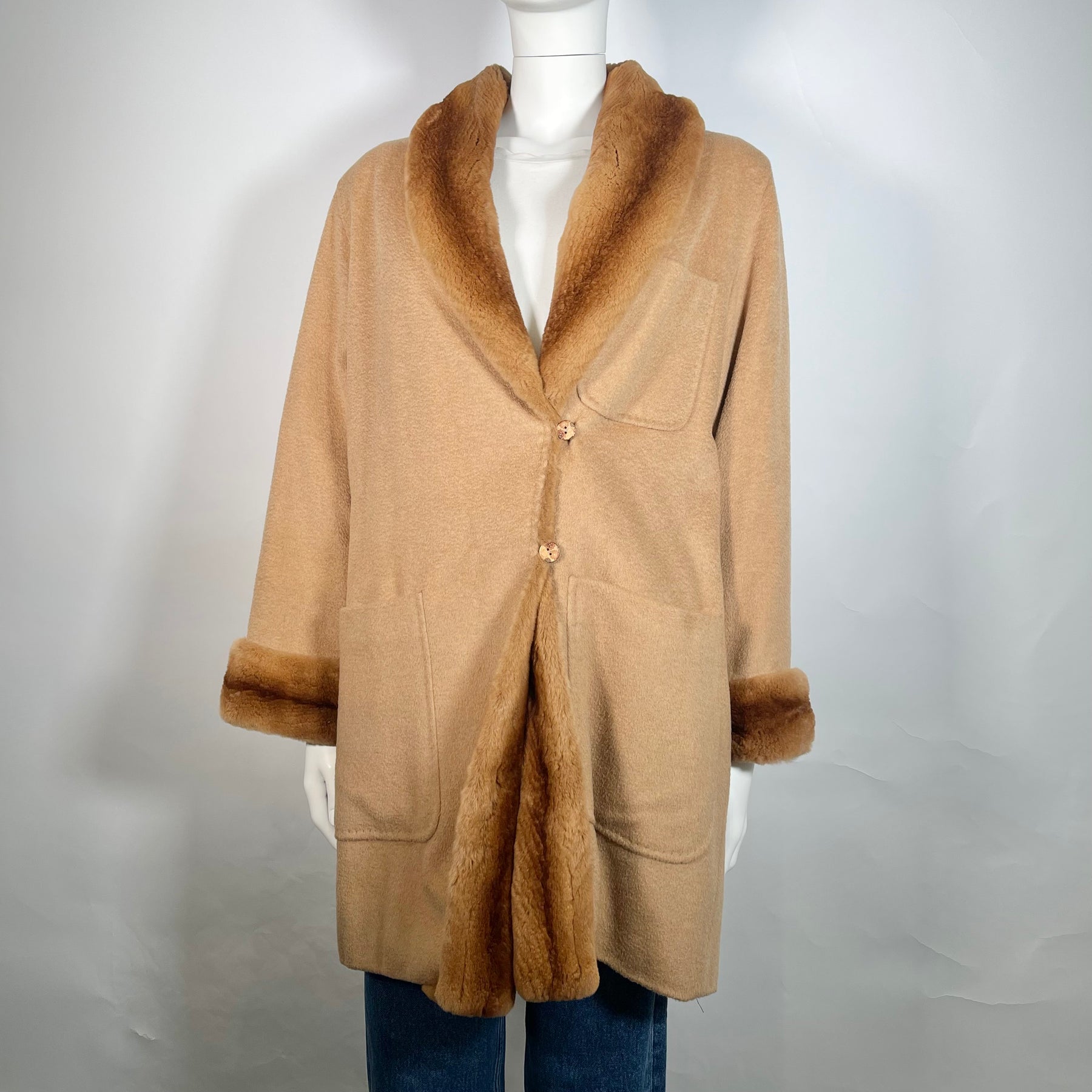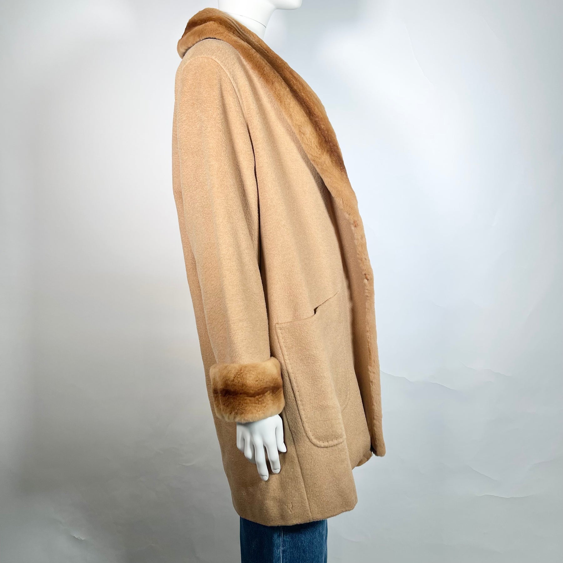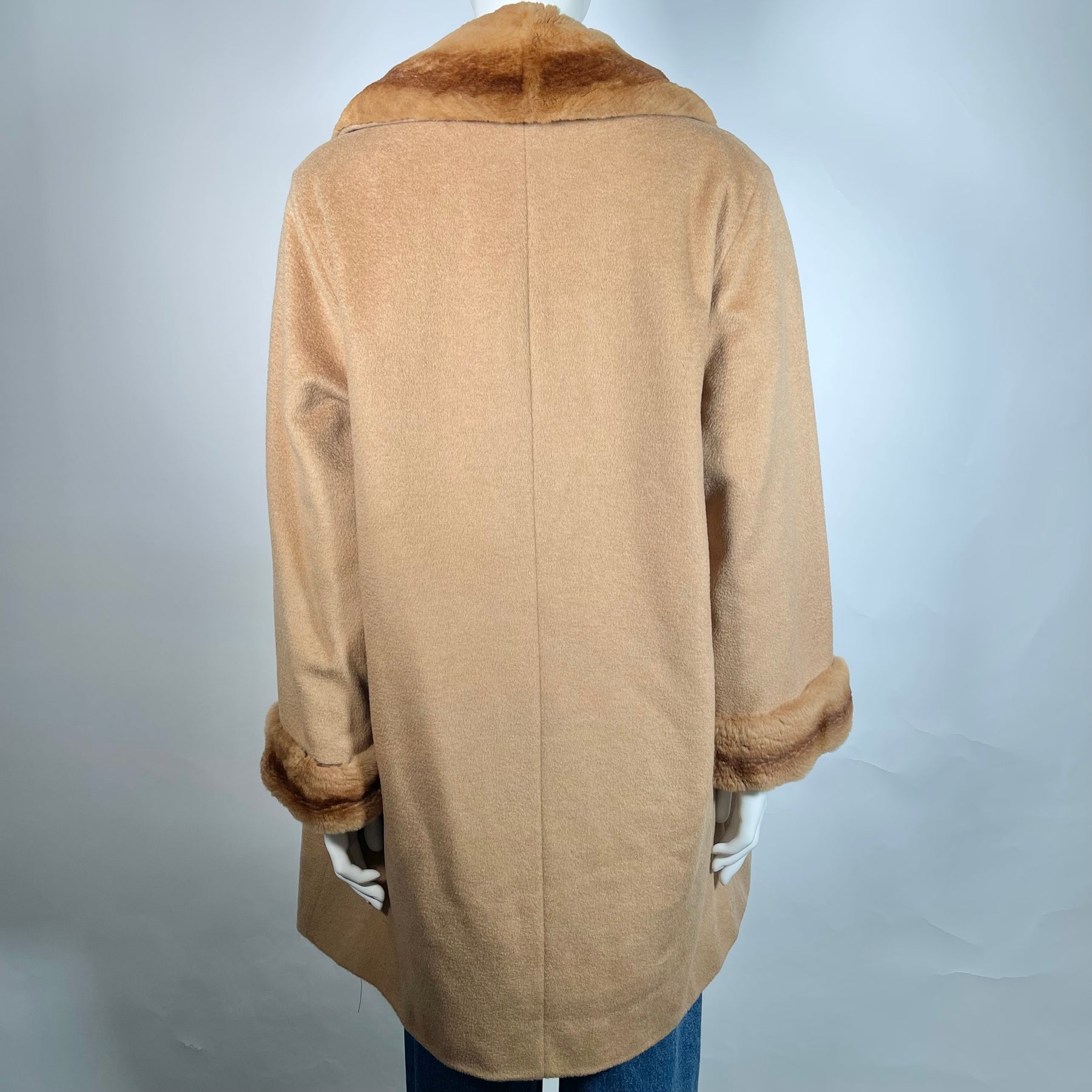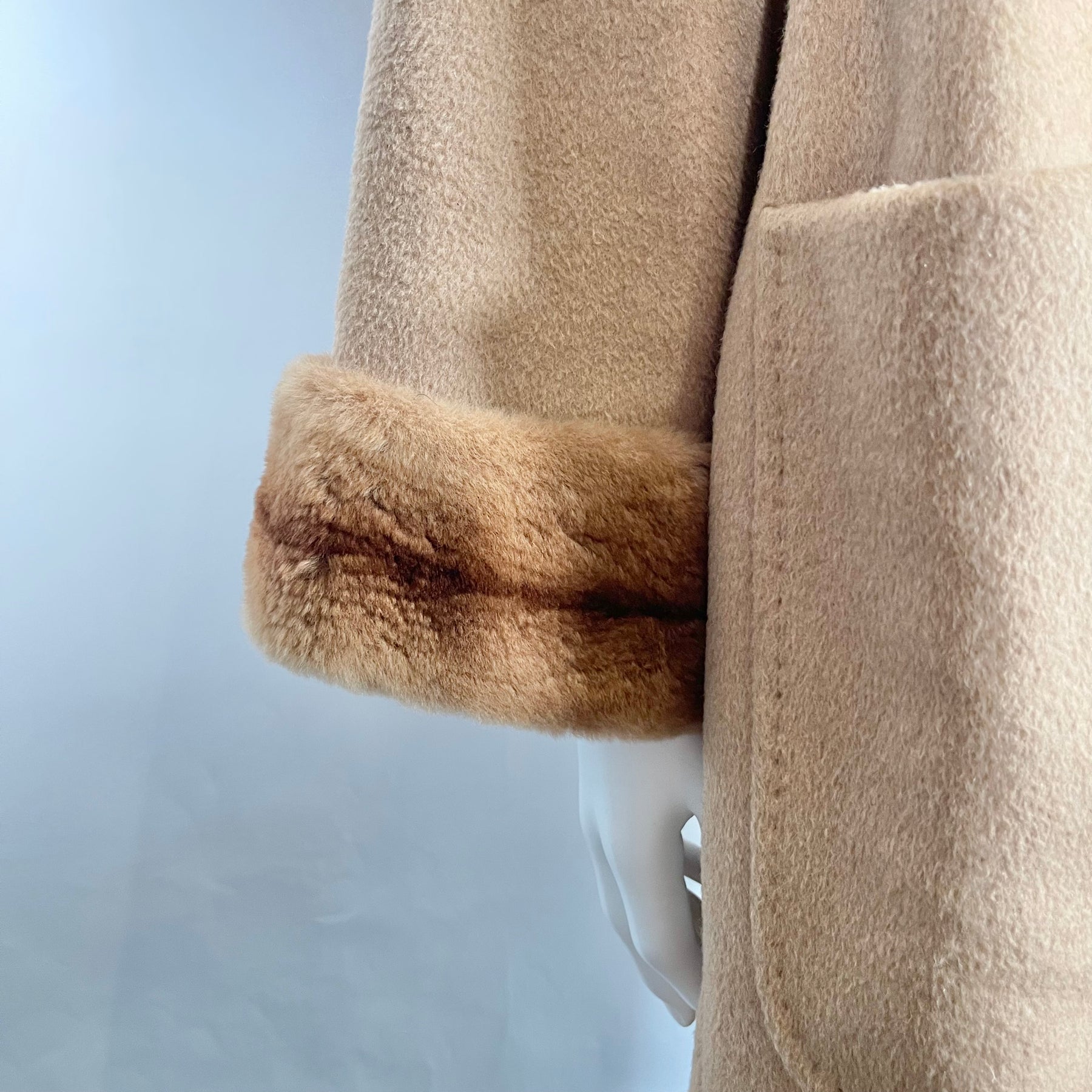 MAX MARA Vintage Coat IT 38 UK 10-12 Beige Camel Hair Mink Fur Trim & Cuff Lined